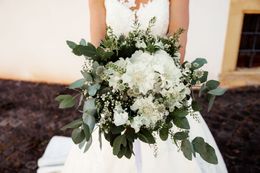 Heute mit diesem wunderschönen Brautstrauß ganz in weiß und grün mit kleinen blauen Akzenten.